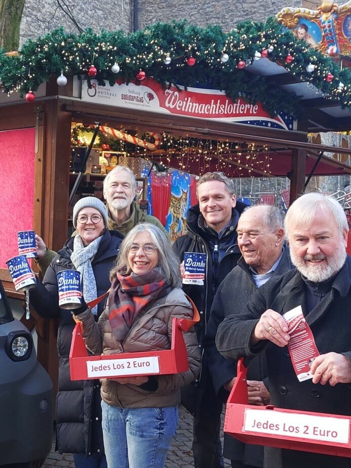 Bereits seit 15 Jahren laden die Stiftung Solidarität bei Arbeitslosigkeit und Armut und die Stiftung Welthaus Bielefeld gemeinsam zur sozialen Weihnachtslotterie auf dem Bielefelder Weihnachtsmarkt ein.
