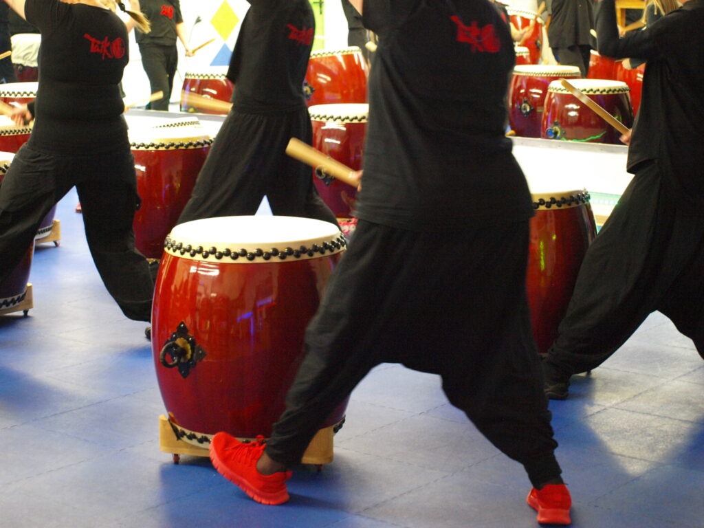 Die vorherrschenden Farben: Schwarz und Rot. Der Klang: ein sattes, tiefes Donnergrollen. Der Rhythmus: komplex und dabei perfekt synchron. Die Trommeln selbst machen ihrem Namen alle Ehre, denn „ Taiko“ bedeutet auf Japanisch wörtlich „ dicke Trommel“ . Der Begriff bezeichnet aber auch das Ensemble von Taiko-Trommlern und ihre Darbietung. Und die ist an diesem Donnerstagabend beeindruckend professionell.