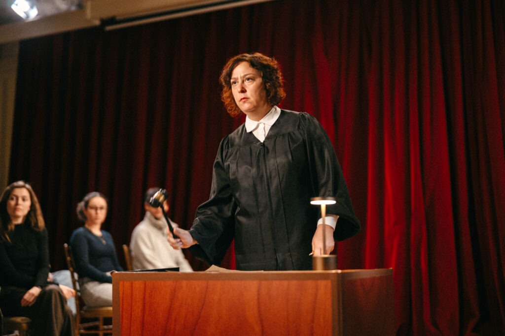 Der Lokschuppen Bielefeld ist bis auf den letzten Platz gefüllt. Gedämpftes Licht, erwartungsvolles Gemurmel. Vor mir auf der Bühne ein Gerichtssaal mit Richterbank, Zeugenstand, Verteidigung, Staatsanwaltschaft. Alles wirkt täuschend echt – nur dass hier heute kein echtes Urteil gesprochen wird. Was nach einem echten Strafprozess aussieht, ist ein immersives Live-Format.