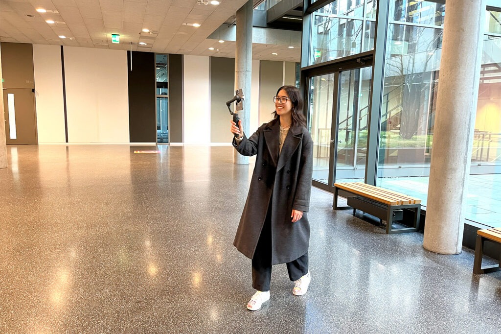 Mit Smartphone, Mini-Mikrofon und Stativ ist sie auf dem Campus unterwegs, stets auf der Suche nach Themen, die Studierende und Studieninteressierte ansprechen oder zum Lachen bringen. Mal entstehen kreative Frage-Antwort-Formate, mal informative Beiträge. Große inhaltliche Vorgaben gibt es kaum – stattdessen liegt der Fokus darauf, Trends auf TikTok oder Instagram aufzugreifen und aus Studierendensicht neu zu interpretieren.