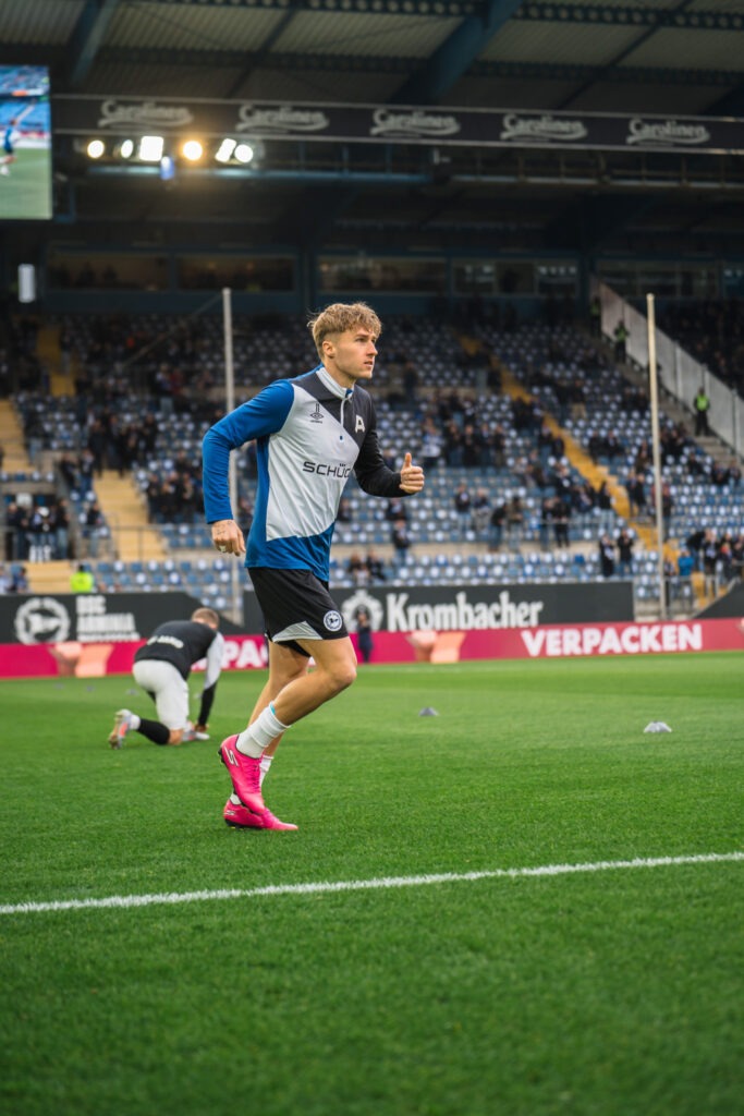 Tempo, Torgefahr, Teamgeist – und dazu eine Portion Bodenständigkeit. Wer Joel Grodowski erlebt, versteht schnell, warum ihn fast alle „Jonny“ nennen – außer seiner Familie. Bei allem, was der 28-Jährige im vergangenen Jahr mit Arminia Bielefeld erlebt hat, wirkt er so, als komme er gerade vom Bolzplatz nebenan. DFB – Pokalfinale in Berlin, Aufstiegsfeiern auswärts und zu Hause – fast jede Woche ein Highlight.