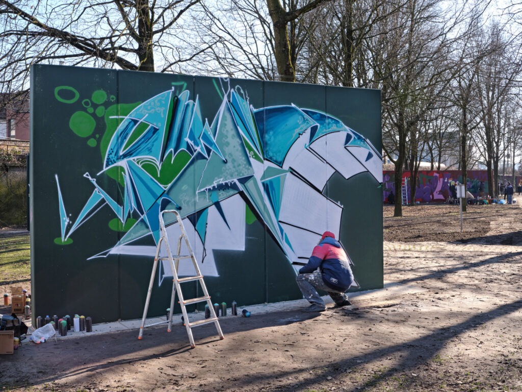 Fast sieben Jahre hatte sich der Verein hoch2 für eine zentrale, legale Fläche eingesetzt, auf der sich die Szene frei entfalten kann. Seit der Freigabe im Februar 2025 verwandeln sich die massiven Betonwände fast täglich in eine neue Open-Air-Galerie.