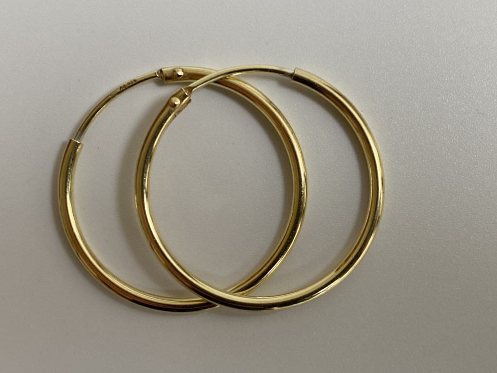 Diese zarten Creolen aus vergoldetem Silber mit 22 cm Durchmesser sind angesagt, lassen sich super kombinieren und verfangen sich garantiert in keinem Schal.