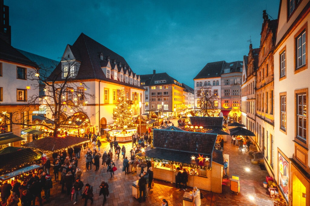 Für viele ist es die schönste Zeit im Jahr, wenn endlich wieder Weihnachtsmusik erklingt, geschmückte Tannenbäume leuchten und der Duft von Glühwein und gebrannten Mandeln durch die Straßen zieht. Zu erleben ist dies alles auf dem Bielefelder Weihnachtsmarkt, der zu den größten in Nordrhein-Westfalen zählt. In mehr als 110 liebevoll dekorierten Häuschen gibt es ein breites Angebot an Kunsthandwerk und winterlichen Leckereien zu entdecken, und nostalgische Karussells bringen Kinderaugen zum Leuchten. Auch in diesem Jahr wird wieder für jeden etwas dabei sein – zwischen dem stimmungsvollen Alten Markt im Herzen der Altstadt, dem rustikalen „Haus vom Nikolaus“ im Altstädter Kirchpark, dem charmanten Hüttendorf auf dem Jahnplatz mit der größten Weihnachtspyramide Nordrhein-Westfalens, den beliebten Glühweinständen in der Bahnhofstraße und dem geselligen Eisstockschießen auf dem Klosterplatz.