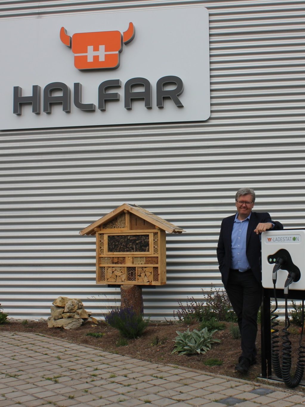 Mitten im Oldentruper Industriegebiet summt und krabbelt es. Rings um das Verwaltungsgebäude und auf dem Dach der Firma Halfar, die in in diesem Jahr ihr 25-jähriges Jubiläum feiert, wurden Ausgleichsflächen für Insekten geschaffen. Liebevoll und mit viel Knowhow angelegt. Eigentlich ist es die Aufgabe von Inhaber Armin Halfar, der das Familienunternehmen gemeinsam mit seiner Frau Kathrin Stühmeyer-Halfar führt, die besonderen Werbetaschen und -rucksäcke in den Markt zu bringen. Doch ein Wirtschaften ohne Nachhaltigkeit ist für das Ehepaar nicht denkbar. Das begann bereits vor 20 Jahren mit der Installation einer Photovoltaik-Anlage auf dem Dach des neuen Firmengebäudes. Wir begleiten Armin Halfar bei einem Rundgang um und durch das Unternehmen.
